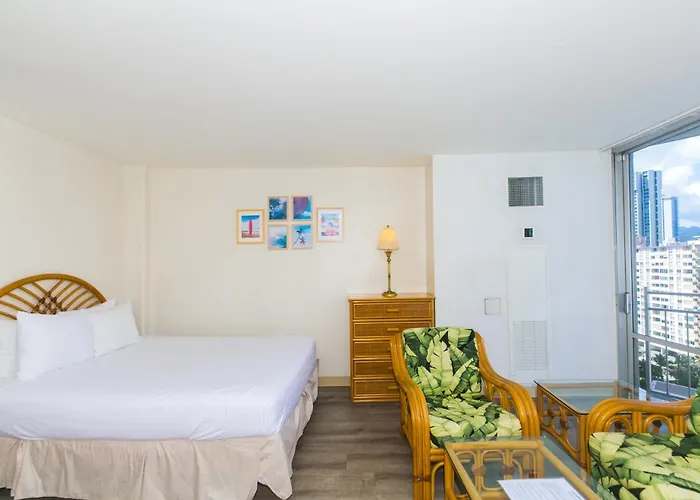 The beach is 1.1 km away, and the Fort DeRussy Beach Park is in the vicinity of the 1-bedroom holiday home. The McCully Shopping Center is located 15 minutes on foot from this property, and Trolley bus station is approximately 400 metres away. Ilikai Marina 1495 City View Studio villa is nestled a few moments from the Duke Kahanamoku Lagoon.
